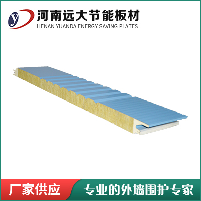 上壓型鋼板、優(yōu)質(zhì)巖棉材料、下壓型鋼板、兩側(cè)為聚氨酯。