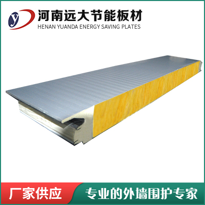 上壓型鋼板、優(yōu)質(zhì)巖棉材料、下壓型鋼板、兩側(cè)為聚氨酯。