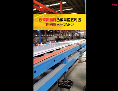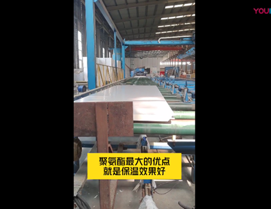 我們公司引進(jìn)意大利賽浦連續(xù)生產(chǎn)線,采用了六組份在線工業(yè)微機(jī)自動(dòng)操作(SIEMENS)混合澆注技術(shù)。生產(chǎn)流程分為開卷覆膜—壓制成型—鋼板預(yù)熱—高壓發(fā)泡—高溫固化—鋸切—板材冷卻—碼垛—自動(dòng)打包等功能與一體的自動(dòng)化生產(chǎn)線,年生產(chǎn)能力為130萬平方米。